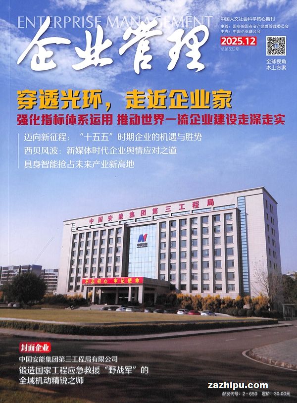 《企业管理》以企业经营管理为主要内容的刊物,在国内同类刊物中一直保持领先地位,拥有上百万读者。创刊20多年来,一直是国内发行量最大的经济类刊物之一,在企业界和管理学界有着庞大的读者群和深远的影响力。杂志全彩色印刷,每期112页,国际流行开本。