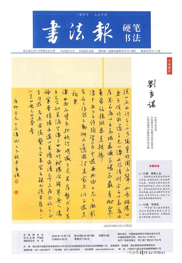 《书法报·硬笔书法》是书法报社旗下报刊之一,由湖北省文联主管,《书法报》创刊于1983年12月,是我国创刊最早、发行量最大的书法专业报,行销全国及海外20多个国家和地区,是书法界的著名品牌。