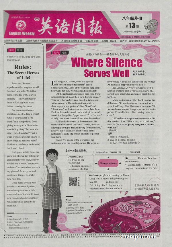 注:本刊为周刊,按学期出刊,杂志铺按月订阅,每月按对应期数发货。