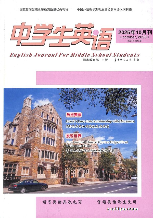 《中学生英语》杂志创刊于1983年,由国家教育部主管、华中师范大学主办,是全国创刊最早的中学英语教辅类期刊。自创刊以来,以其高品位、高质量、高效率的办刊特色、高素质的办刊人才以及高标准的办刊方向享誉全国,赢得了广大读者朋友的普遍赞扬和喜爱。国家新闻出版总署检测质量优秀刊物,文章已被中国知网和《万方数据--数字化期刊群》全文收录期刊、《中国核心期刊(遴选)数据库》入选期刊、《中国期刊网》全文收录期刊。